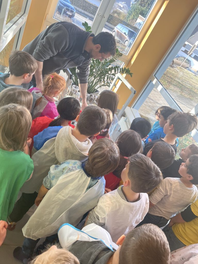 Am Dienstag fand ein besonderes Event für einige Kinder der 1. Klassen statt: Zusammen mit dem Experten Herrn Wolf aus Kriegenbrunn stellten sie Meisenknödel für unsere heimischen Vögel her. Mit viel Freude und großem Interesse mischten sie Fett und Körner und formten daraus leckere Futterknödel.