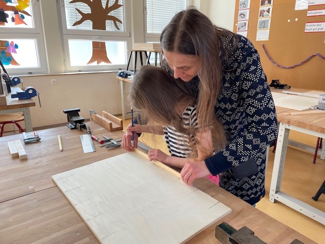 Am Samstag trafen sich Eltern und Kinder in der Schule, um Stationen von der Miniphänomenta nachzubauen.