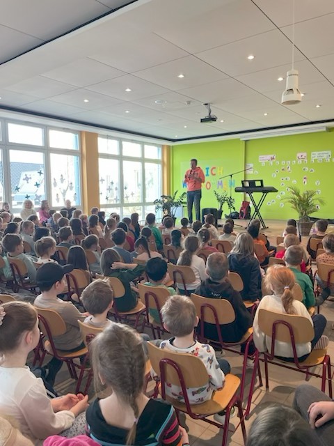 Alle Kinder der Schule durften eine Stunde mit Herrn Keller singen, sich bewegen und tanzen. Dabei herrschte bei allen eine super Stimmung.Wenn Kinder Lust haben, im Chor zu singen, nehmen Sie bitte mit der Verwaltung von St. Magdalena Kontakt auf.